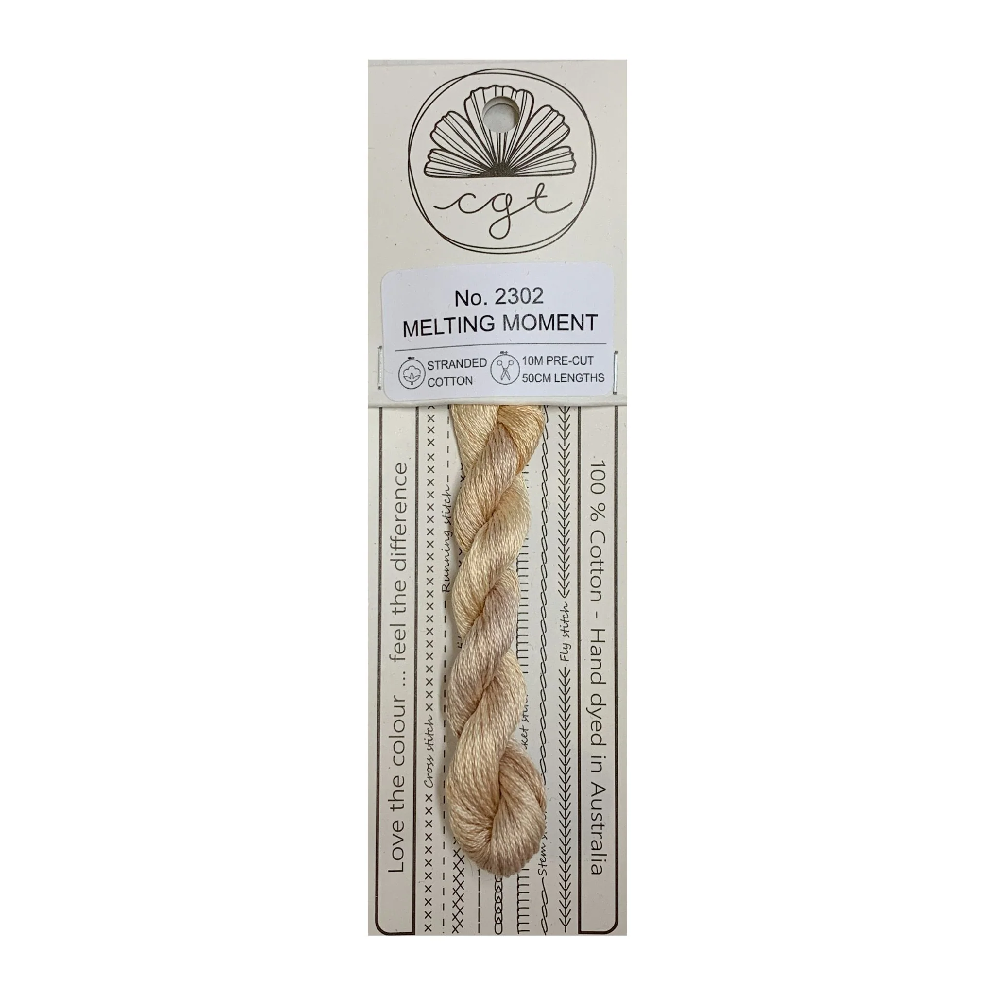 ….Convenient packaging – The clever pop and drop system (see photo) allows you to keep the thread information handy. By simply pulling on the left hand side of the skein, the thread will untwist and be ready to use length by length, or strand by strand. Care instructions in photo gallery