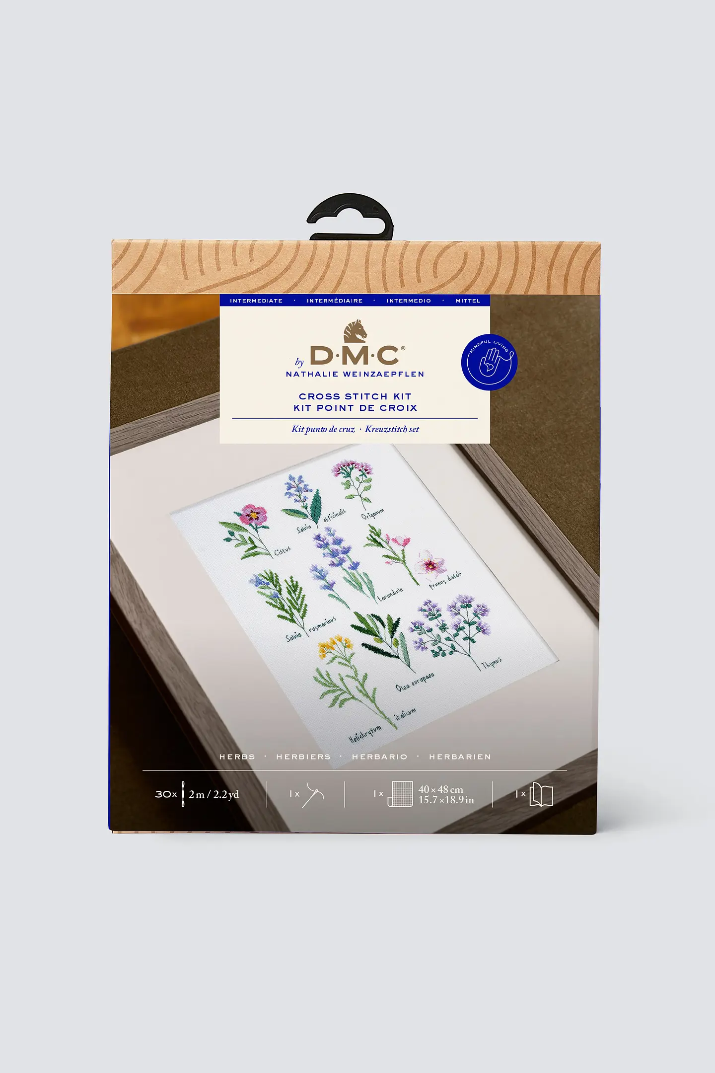 A wonderful cross stitch sampler by Nathalie Weinzaepflen for those who enjoy fresh herbs from the garden. These flowers are as beautiful to look at as they are to eat. Stitched on 14-count 5.5 pts/cm 100% cotton Aida with DMC Mouliné Spécial stranded embroidery thread.