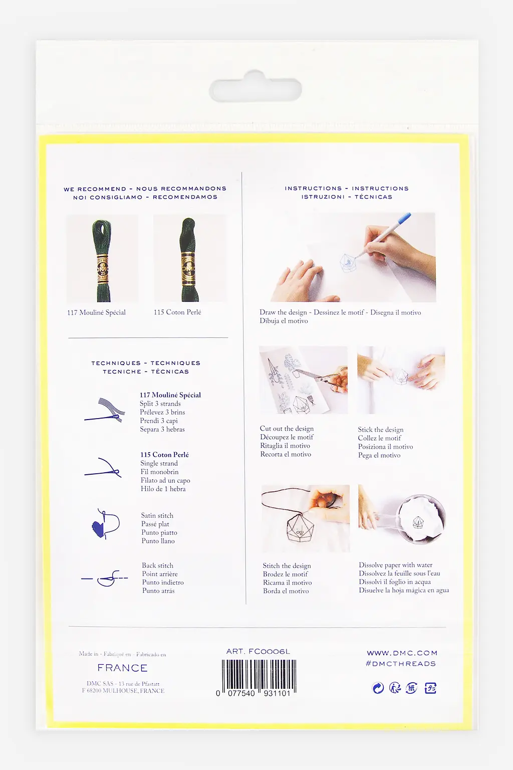 Just sketch out your design onto the grid, cut out the design, peel off the backing paper and stick onto your fabric. Once you are happy with the positioning, stitch through the soft fabric-like transfer paper using the printed design to guide you. Once you’ve finished stitching, a quick rinse under water for a few seconds will completely dissolve the Magic Paper leaving behind your beautiful needlework.