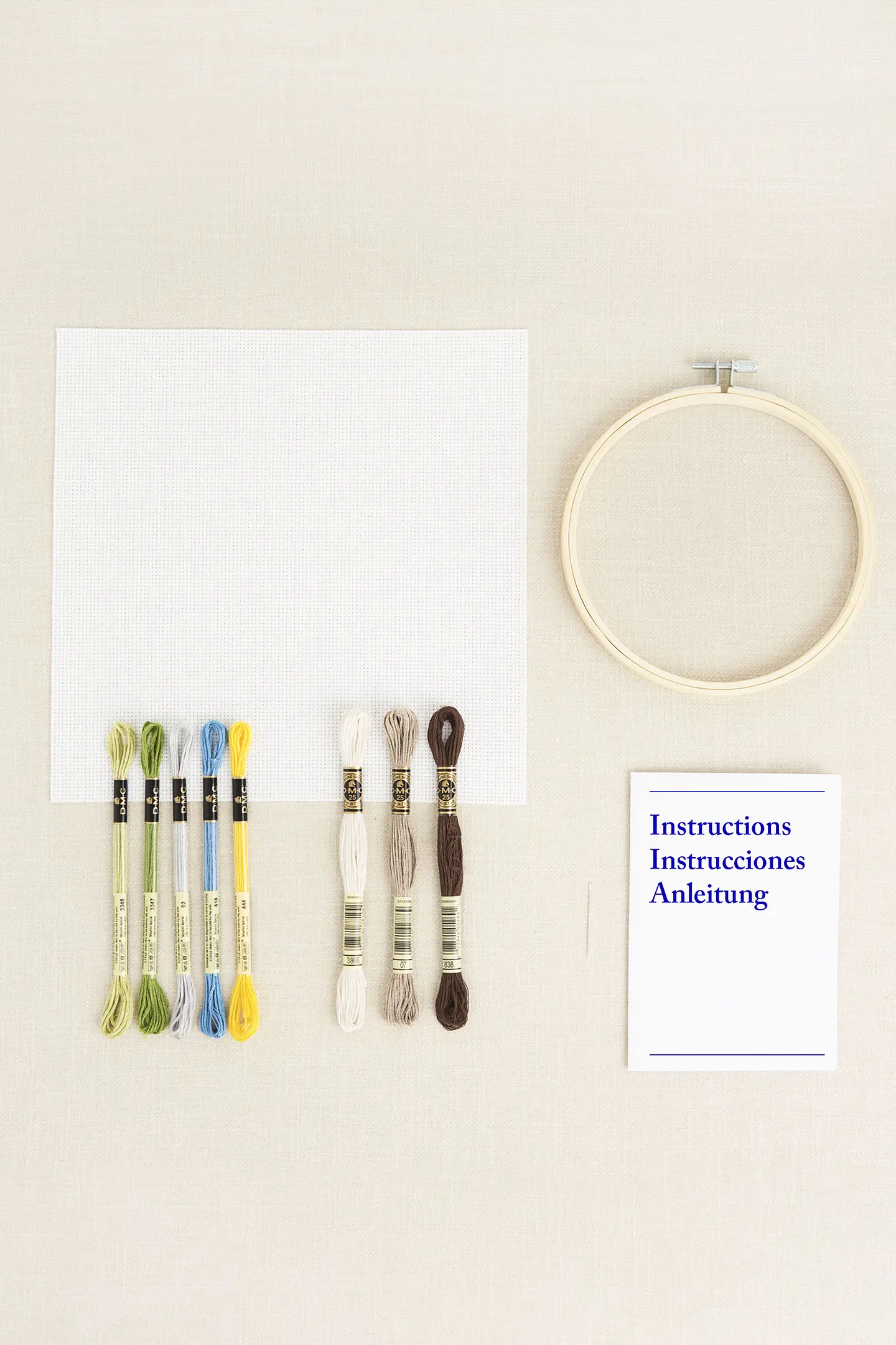 Stitch your own watering can filled with cheerful flowers with this kit from Anna Matvieieva. The intermediate kit includes everything you need to stitch the design including fabric, thread and an embroidery hoop.