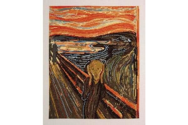PRE-ORDER (Despatch within 7 working days) Transforming this thrilling E Munch painting into cross stitch will allow you to experience the true details in a new way, adding lustre and texture with Mouliné Spécial threads. Size – 48x42cm/18.8×16.5″ One kit: 14 count Aida DMC Threads on organiser Needle Chart and Instructions