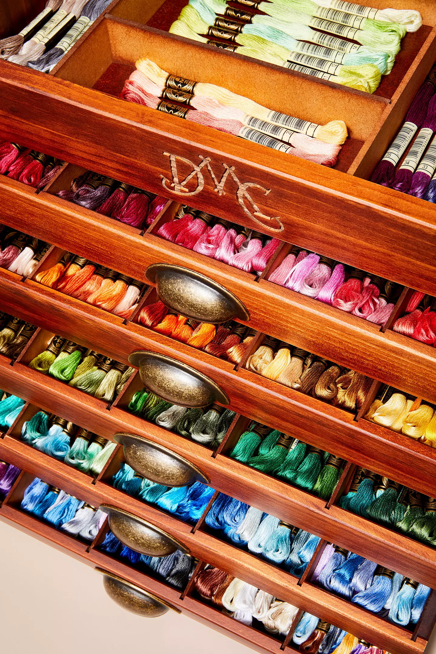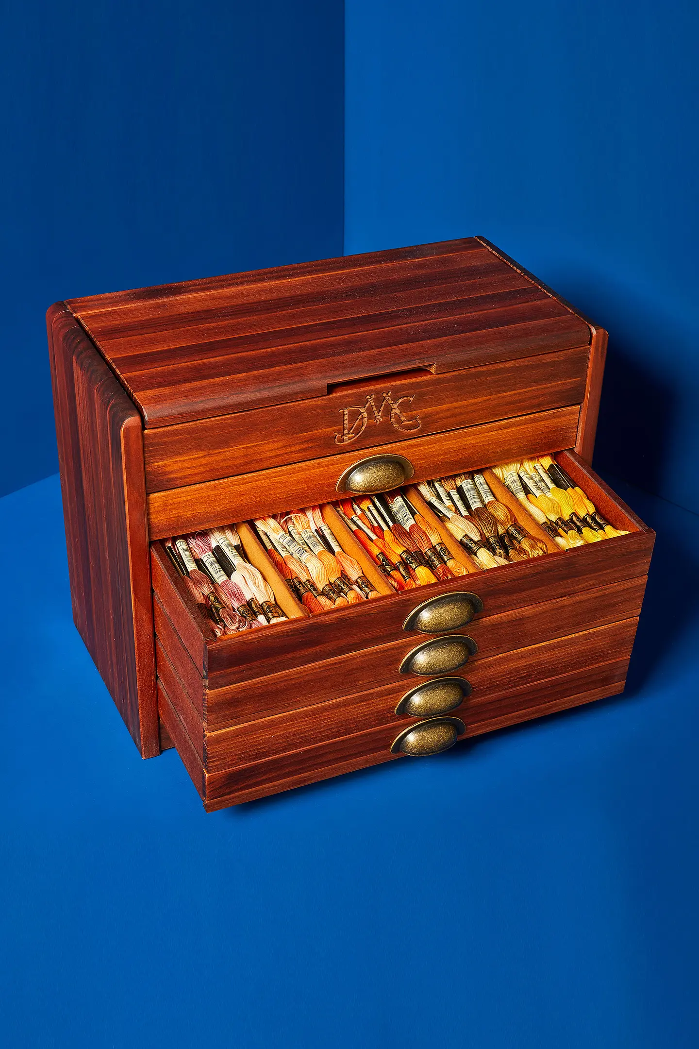 This DMC 5 drawer chest contains a skein of DMC stranded cotton in every colour (500 skeins). An exquisite piece with a vintage design, it will look beautiful in any room. It allows for an easy organisation of the skeins either by number or by colour.