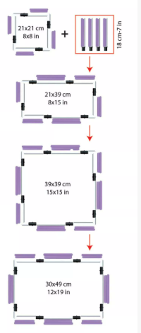 Also available is an Extension Rod pack consisting of x4 18cm Rods to enable you to extend the working area of your chosen Snap Frame. Depending on where you add the 4 extension rods will allow you to create 4 different size frames from the initial starting size.