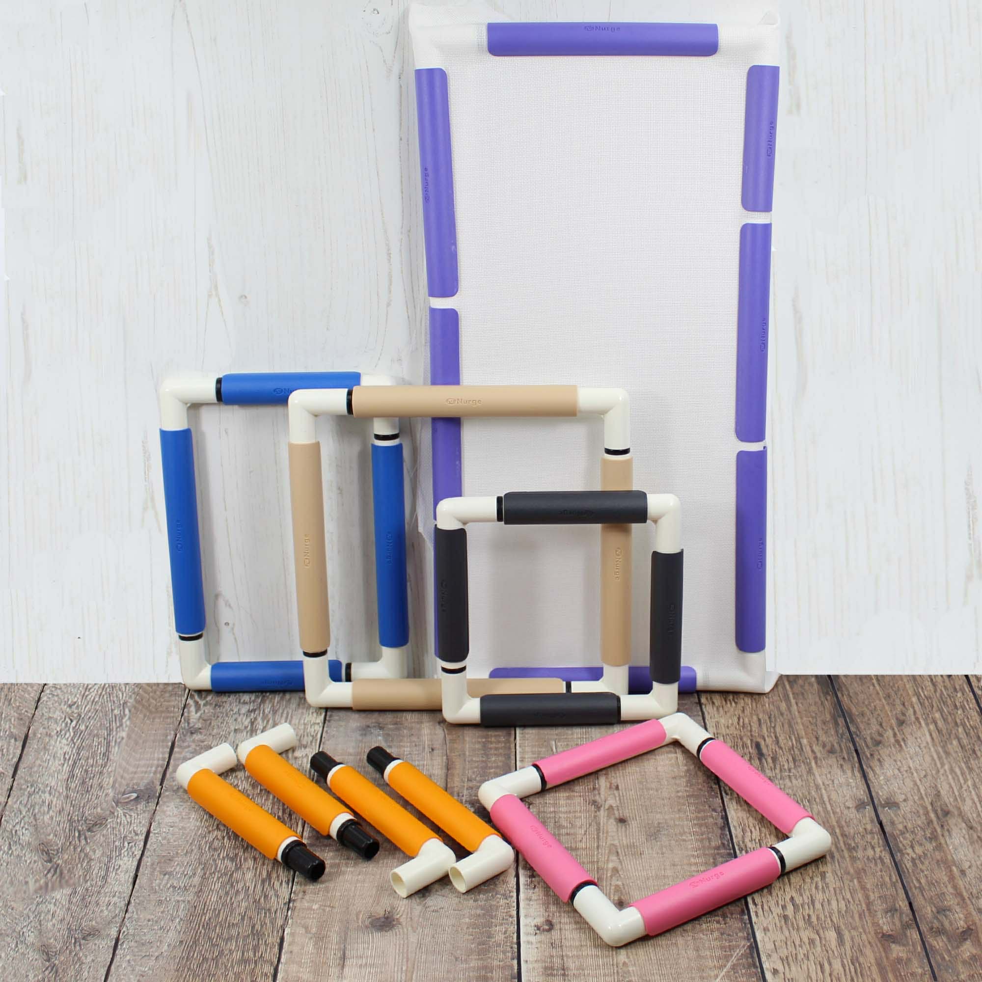 each other to make a frame. The colourful clips can then be removed to place your fabric over the frame and then ‘Snap’ the clips back on the frame to trap your fabric. Give each clip an outward twist on the pipe until you have the optimum taut tension on the fabric to enable you to start your next masterpiece!