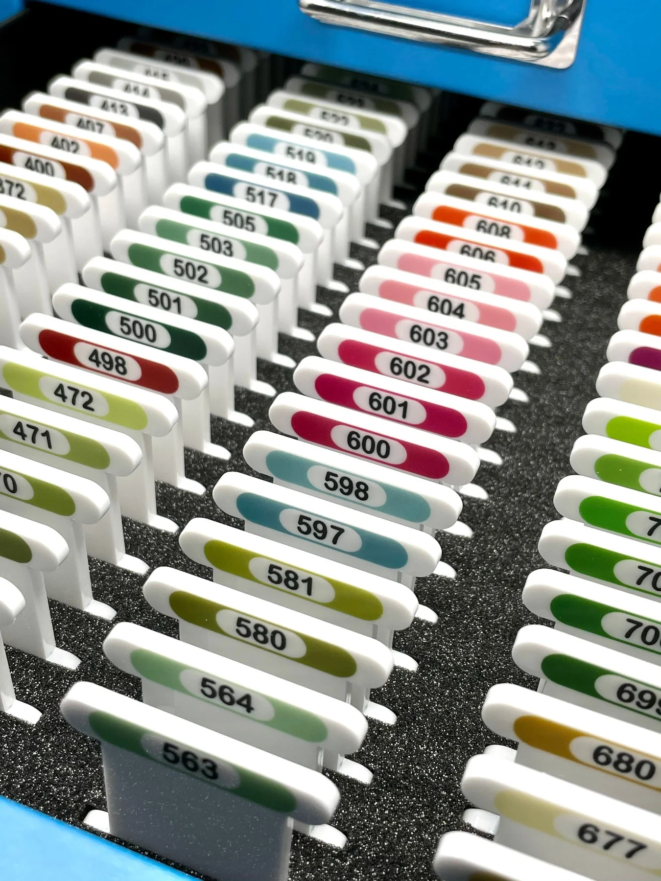 Made by Pip&Chip in Gloucestershire, UK. This is the full set of WHITE 3mm acrylic bobbins with signature colour swatch. Say goodbye to the frustration of stickers falling off as the numbers are printed directly on the bobbins. WHAT’S INCLUDED: – You will receive a total of 528 bobbins – this is made up of…