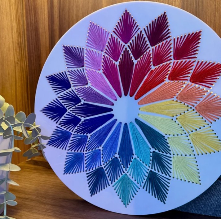 Lovingly made by Pip and Chip in Gloucestershire, UK. Create your own bold geometric flower with this modern acrylic stitching base — a relaxing, beginner-friendly project that builds petal by petal into a striking finished piece.
