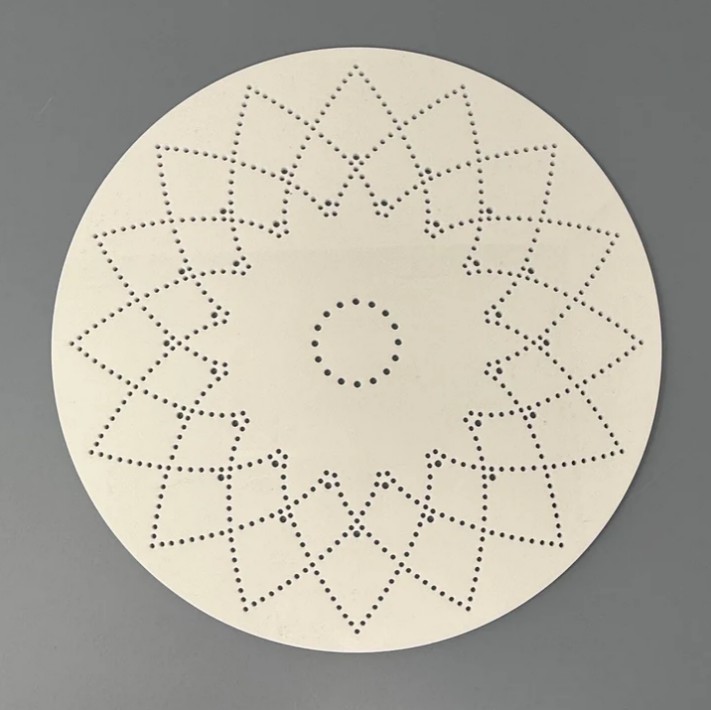 25cm round white acrylic base with precision laser cut holes