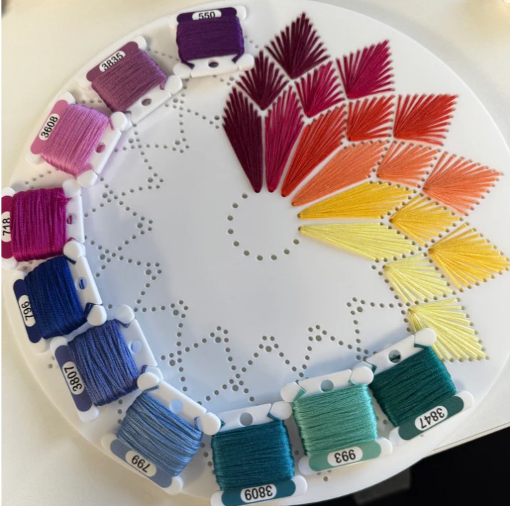 DMC threads (or similar) – The design shown has 16 colours and uses approx. 3m of each colour