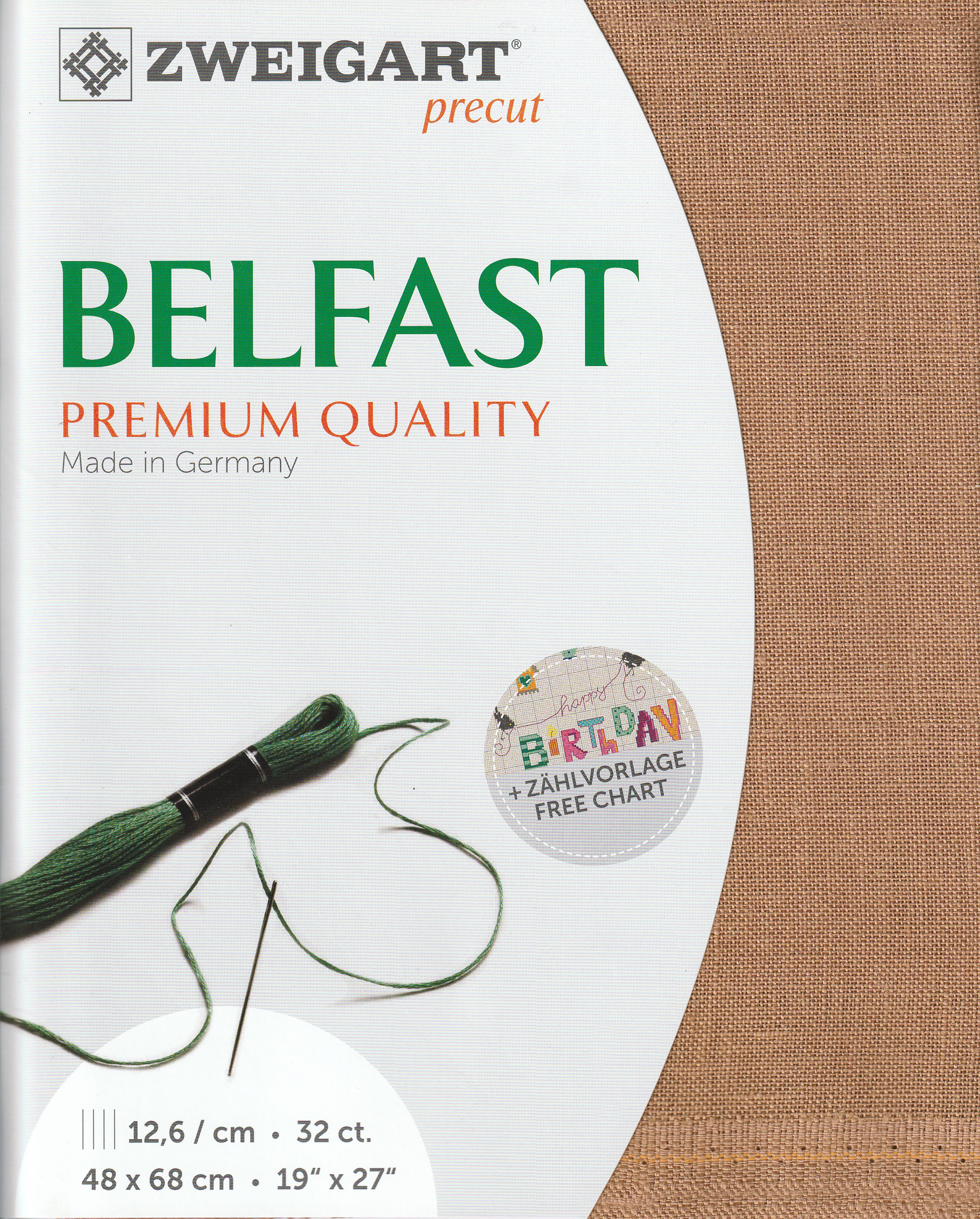 Genuine Zweigart Belfast 32 count canvas, 0.48 metres wide & 0.68 metres long. Ideal for counted thread and cross stitch embroidery projects. Belfast linen is equivalent to 16 count when worked over two threads and at the same time offers the stitcher a more even surface. 100% linen; 48x68cm (19×27″)